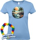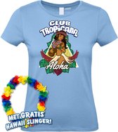 T-shirt de plage hawaïenne pour femmes | Toppers in concert 2024 | Club Tropicana | Chemise hawaïenne | Vêtements Ibiza | Dames bleu clair | taille L.