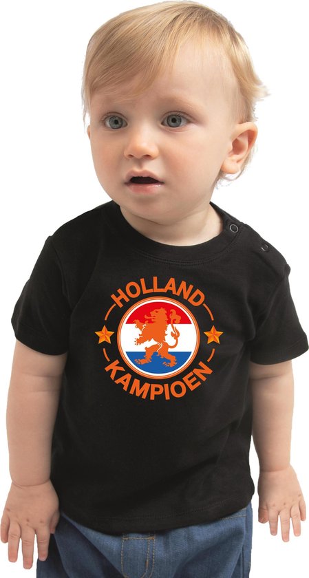 T-shirt fan Zwart pour bébé / tout-petits - Champion de Holland avec lion - Supporter des Nederland - Maillot de championnat d'Europe / Coupe du monde / outfit 92 (11-24 mois)