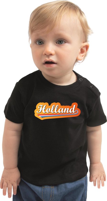 T-shirt fan Zwart pour bébé / tout-petits - Holland avec fanion néerlandais - Supporter des Nederland - Maillot championnat d'Europe / Coupe du monde / outfit 92 (11-24 mois)