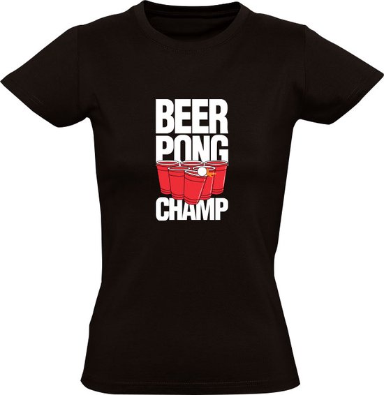 T-shirt femme Zwart avec imprimé : Beer pong champion. Chemise drôle lors des fêtes.