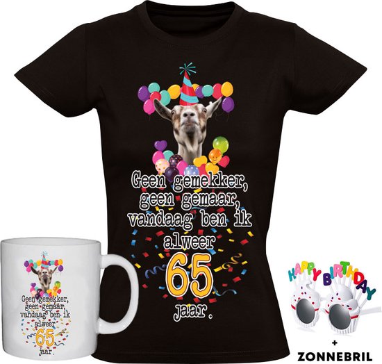 T-shirt femme rigolo 65 ans + Mug + Lunettes - 65ème anniversaire - anniversaire - cadeau - cadeau - chemise