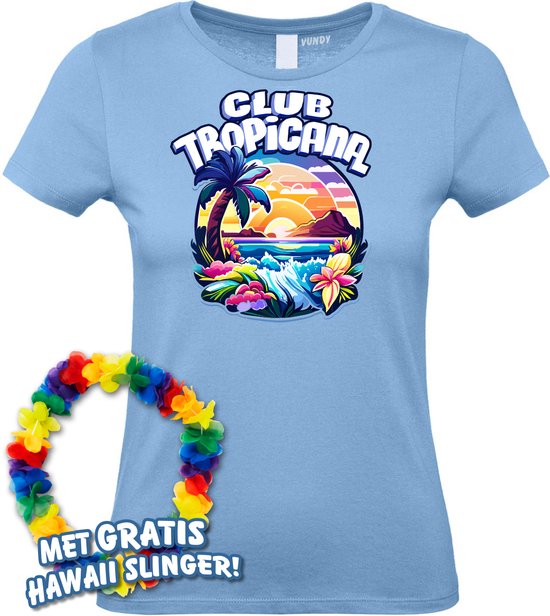 T-shirt femme Tropiques colorés | Toppers in concert 2024 | Club Tropicana | Chemise hawaïenne | Vêtements Ibiza | Dames bleu clair | taille S