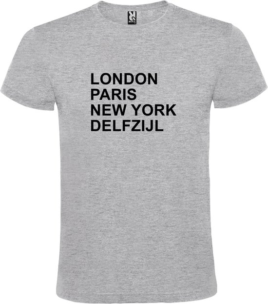 T-shirt Grijs imprimé "London, Paris , New York, Delfzijl" Zwart taille XXXXL