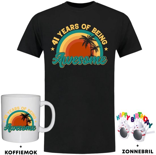 T-shirt homme 41 ans + Mug à café + Lunettes Happy anniversaire - 41e anniversaire - fête - cadeau