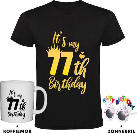 T-shirt homme 77 ans + Mug à café + Lunettes Happy anniversaire - anniversaire - cadeau - fête