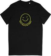 T Shirt Smiley - Texte Positif Don't Worry Be Happy - Zwart L