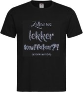 T-shirt Mixte Adultes vin - carnaval - foire - fête - drôle Texte "On se fait un joli câlin ?! (eigen )" au recto | manche courte | Zwart/argent Noir PAILLETTES | taille L.