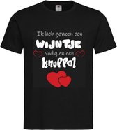 T-shirt Unisexe Adultes Fun - carnaval - foire - fête - drôle - humour - saint valentin - Texte "J'ai juste besoin d'un verre de vin et d'un câlin" Sur le devant | manche courte | Noir / rouge / blanc | taille M