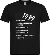 T-shirt Mixte Adultes Fun - carnaval - foire - fête - rigolo Texte "To do list Carnival" devant | manche courte | Noir / blanc | taille L.