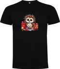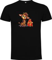 T-shirt unisexe Zwart avec imprimé « Chouette de Noël colorée avec lumières de Noël en désordre et cadeaux / Joyeux Noël » Marque complète Roly taille 152 11/12 ans