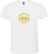 T-Shirt Wit avec Image « Made in 1980 / 100% Original » Or Taille L