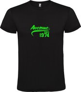 T-Shirt Zwart avec Image «Awesome depuis 1975 » Vert Fluo Taille XL