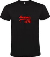 T-Shirt Zwart avec Image « Made in 1974 / 100% Original » Rouge Taille S