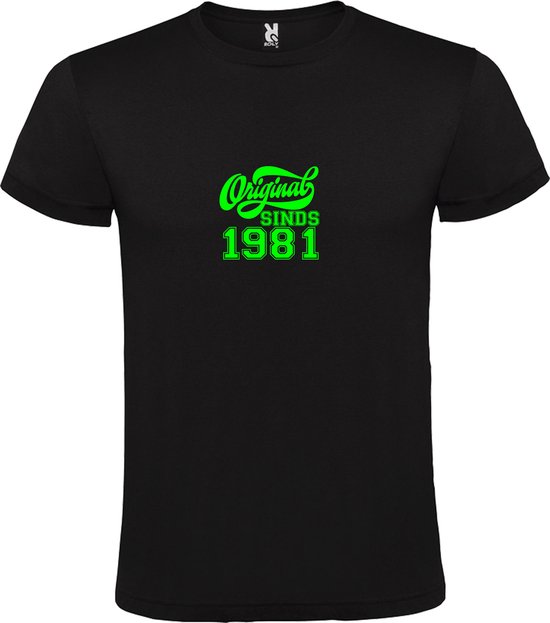 T-Shirt Zwart avec Image «Original Since 1981 » Vert Fluo Taille XL