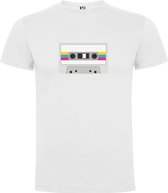 T-shirt Wit avec imprimé « Cassette colorée – Rétro – Années 80 – Souvenirs – Bonnes vibrations » en couleur, taille L