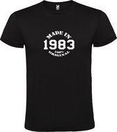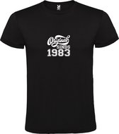 T-Shirt Zwart avec Image "Made in 1983 / 100% Original " Wit Taille S