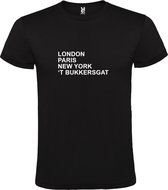 T-Shirt Zwart avec texte Londres, Paris, New York , Knollevretersgat Wit Taille L