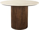 Si vous cherchez une table à manger pour transformer la salle à manger en un endroit confortable, vous êtes au bon endroit avec le Dutchbone Barlet. Ces tables à manger sont conçues avec un plateau rond ou ovale. Cela donne une touche féminine subtile, mais garantit également que vous vous regardez facilement. De plus, ces formes rondes en combinaison avec le placage de noyer et de chêne dégagent beaucoup de chaleur. La base caractéristique avec les différentes lattes apporte également une touche surprenante et complète le look. Le meuble parfait pour une salle à manger d'ambiance - un endroit pour réchauffer votre âme.
