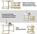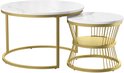 Table basse ronde (2 pièces), 70x45,5 cm, 45x40 cm, table avec plateau blanc et support de pied doré, ensemble de 2 tables basses rondes intégrées dans le côté du canapé (plateau blanc + pied doré)