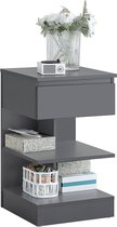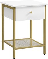 Table de chevet à vide ouvert, table de chevet avec 1 tiroir, grande table d'appoint, petite table basse, carrée, pour chambre, salon, acier + bois, blanc + gris