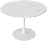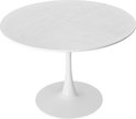 Table de salle à manger ronde moderne Merax – 120 cm – Plateau en quatre parties avec Design grain de bois – Base en métal – Wit