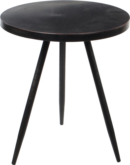 Cette table ronde noire de Mica Decorations est un véritable accroche-regard, il vous suffit donc de l'avoir. La table est en fer, a une longueur et une largeur de 35 cm et une hauteur de 40 cm. Design vintage industriel donc gardez à l'esprit les bosses et les rayures.