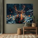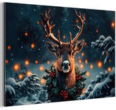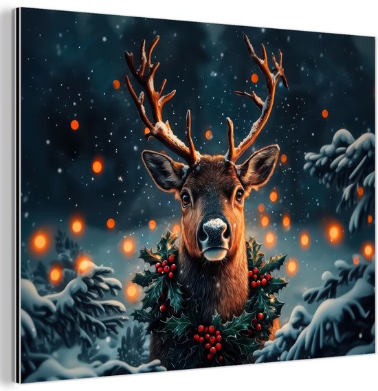 Tableau aluminium 160x120 cm - Décoration murale métal - Cerf - Noël - Hiver - Neige - Couronne de Noël - Décoration murale métal salon - Décoration industrielle - Photo sur dibond - Accessoires industriels chambre