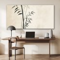 De fines tiges de bambou aux feuilles vertes subtiles, disposées sur un fond beige. La composition rayonne de paix et de minimalisme...