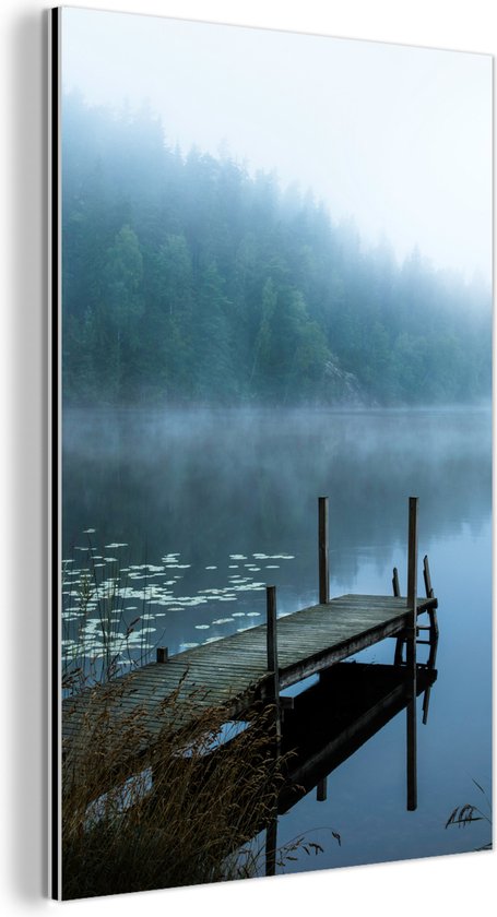 Tableau aluminium 80x120 cm - Décoration murale métal - Nature - Lac - Forêt - Brume - Décoration murale métal salon - Décoration industrielle - Photo sur dibond - Accessoires industriels chambre