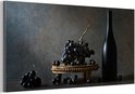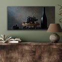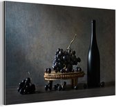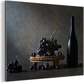 Tableau aluminium 80x40 cm - Décoration murale métal - Nature morte - Zwart - Bouteille - Raisins - Décoration murale métal salon - Décoration industrielle - Photo sur dibond - Accessoires industriels chambre