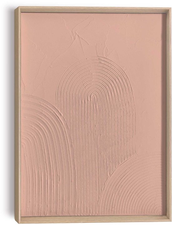 Décoration murale faite main avec relief abstrait en plâtre encadré par un cadre en bois. Le minimalisme scandinave avec texture 3D s'intègre dans la plupart des styles de vie modernes tels que basique, vintage, urbain ou industriel.