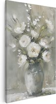 Tableau Artaza Fleurs Witte devant une clôture en bois - 90x120 - Décoration murale - Photo sur toile - Impression sur toile