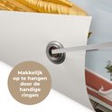 Les Posters de jardin, également appelées toiles de jardin, sont des affiches spécialement conçues pour être accrochées à l'extérieur. Cette nappe de jardin peut donc prendre une raclée. La voile Bisonyl a été utilisée pour cette affiche extérieure. Cette voile est une bâche enduite avec une belle finition. L'affiche de jardin est résistante aux UV, elle ne se décolore donc pas au soleil. Plusieurs anneaux ont été placés dans la toile pour que vous puissiez facilement l'accrocher! Jusqu'à une taille de 120x80 cm, les anneaux sont dans les coins, avec des tailles plus grandes, les anneaux viennent tous les 60 cm. Le tissu résiste aux différentes influences climatiques et est garanti 3 ans.