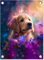 Tableau de jardin Chiens - Puppy - Zwart - Wit - Animaux - 60x80 cm - Affiche de jardin
