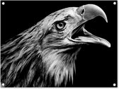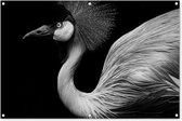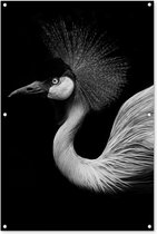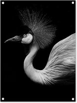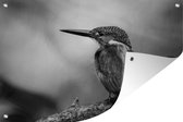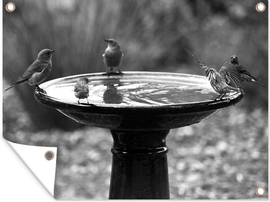 Tableau de jardin Différentes espèces d'oiseaux partageant un bain d'oiseaux - noir et blanc - 80x60 cm - Affiche de jardin