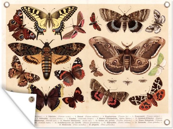 Tableau de jardin Papillon - Vintage - Crayon - Animaux - 80x60 cm - Affiche de jardin
