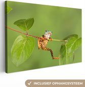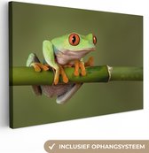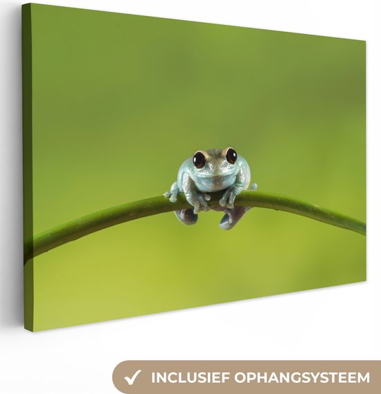 Tableau sur toile Grenouille - Branche - Vert - 80x40 cm - Décoration murale