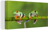 Tableau sur toile Grenouilles - Branche - Vert - 80x40 cm - Décoration murale