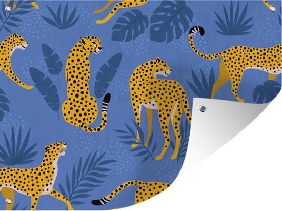 Tableau jardin Motifs - Panthère - Blauw - 80x60 cm - Affiche jardin - Toile jardin - Affiche extérieur