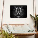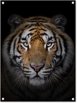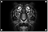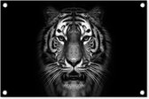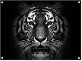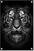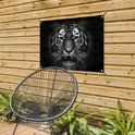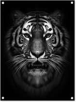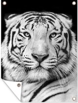 Tableau jardin Tigre - Animaux - Zwart - Wit - Portrait - Sauvage - 80x60 cm - Affiche jardin - Toile jardin - Affiche extérieur