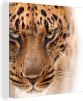 Tableau Peinture Léopard - Prédateur - Portrait - 90x90 cm - Décoration murale