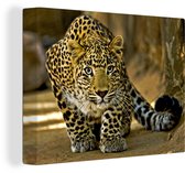 Portrait d'un léopard se faufilant vers l'avant. L'animal est brun avec des taches noires.Vaste collection