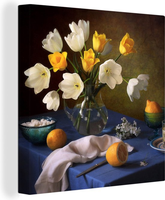 Tableau Peinture Nature Morte - Vase - Fruit - 50x50 cm - Décoration murale