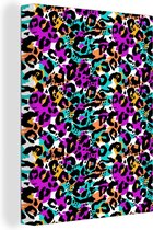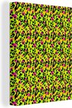 Tableau Peinture Panthère - Néon - Jaune - Rose - 30x40 cm - Décoration murale