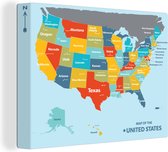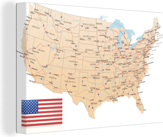 Tableau Peinture sur Toile Carte Détaillée de l' Amérique - 90x60 cm - Décoration murale