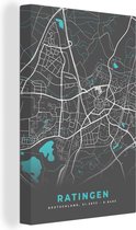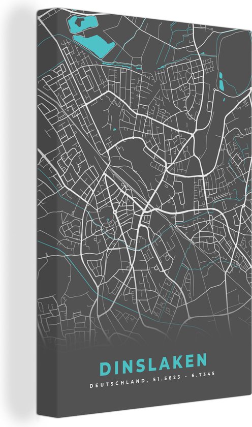 Tableau Peinture sur Toile Carte – Plan d'Etage – Plan de Ville – Dinslaken – Allemagne – Blauw - 40x60 cm - Décoration murale