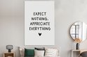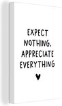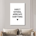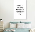 Tableaux sur toile - Citation anglaise N'attendez rien, appréciez tout avec un coeur sur fond blanc - Salon - Chambre