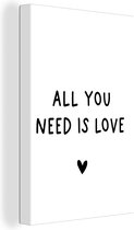 Tableau sur toile Citation anglaise All you need is love avec un coeur sur fond blanc - 120x180 cm - Décoration murale XXL