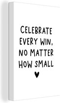 Tableau Peinture sur toile Citation anglaise N'attendez rien, appréciez tout avec un coeur sur fond blanc - 120x180 cm - Décoration murale XXL