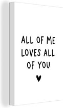 Tableau sur toile Citation anglaise All of me loves all of you avec un coeur sur fond blanc - 120x180 cm - Décoration murale XXL